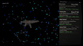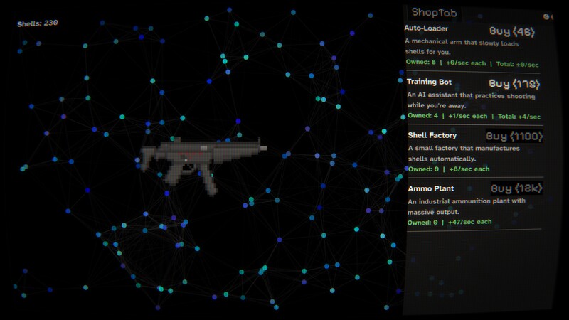 A slick clicker game where every click pulls the trigger. Earn shells, unlock wild gun cosmetics, and stack permanent multipliers. Simple to play, hard to quit. Lock, load, and click your way to glory.